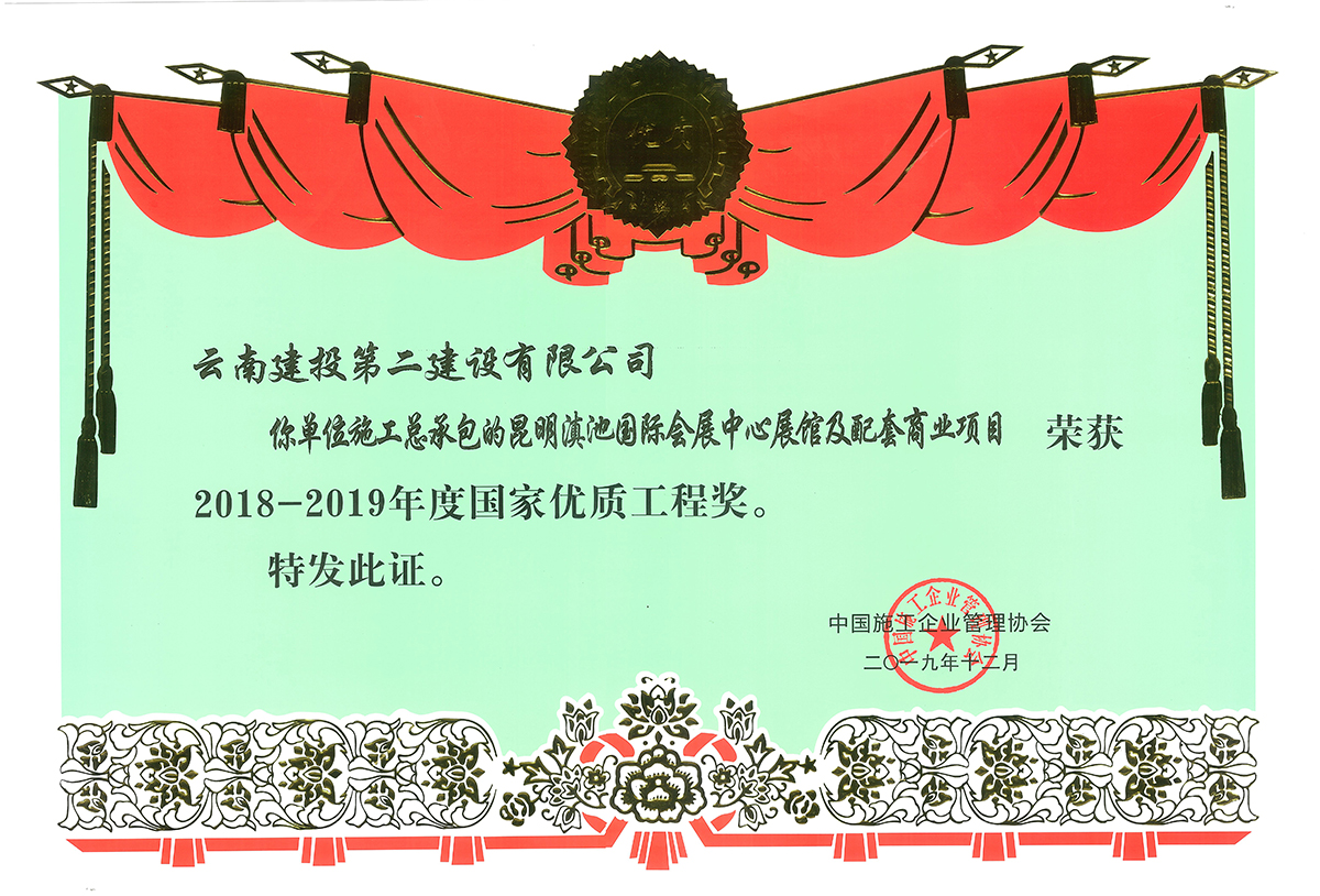 13 | 昆明滇池国际会展中心展馆及配套商业项目 | 中国施工企业管理协会 | 2018 | |