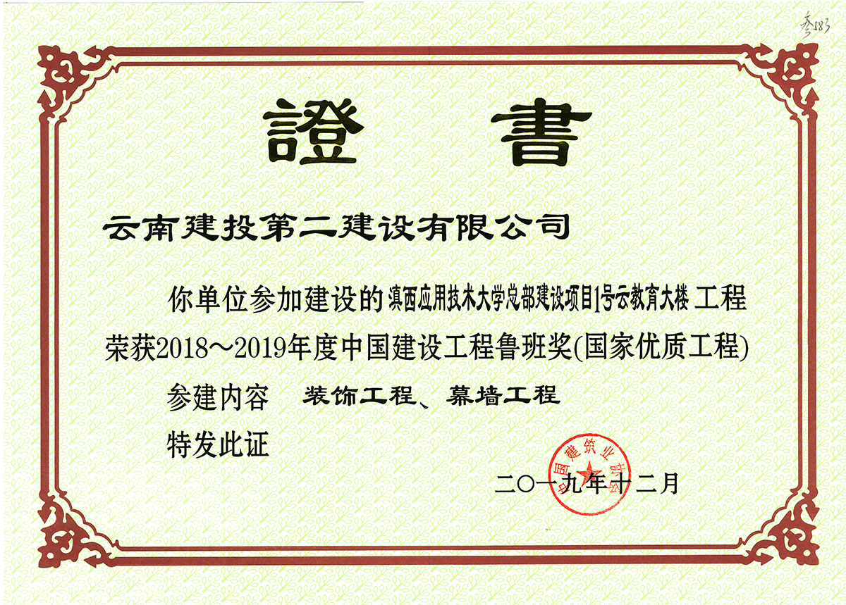 4 | 滇西应用技术大学总部建设项目一号云教育大楼 | 中国建筑业协会 | 2019 | |