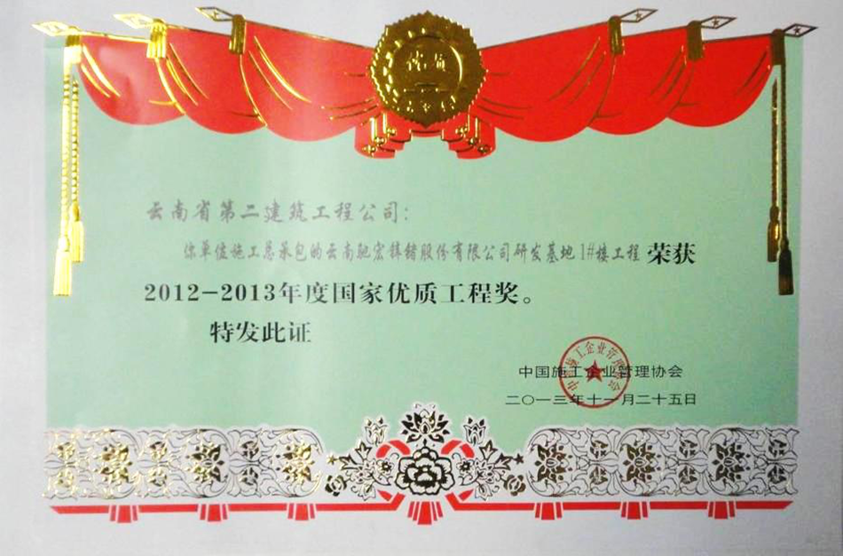 11 | 云南驰宏锌锗股份有限公司研发基地1#楼 | 中国施工企业管理协会 | 2013 | |